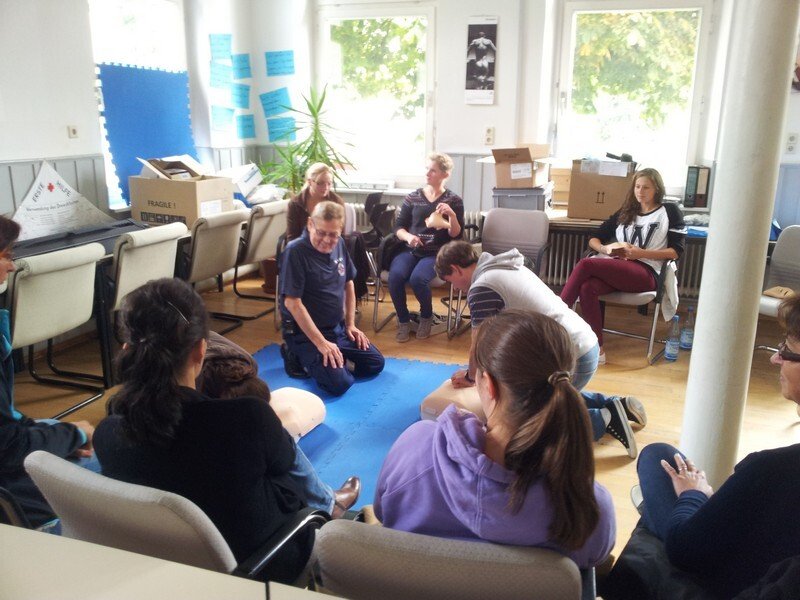 Nach einer freundlichen Begrüßung durch den Kursleiter Michael Müller und Erläuterung zum Ablauf der beiden Kurstage verfolgten die Teilnehmer aufmerksam den Ausführungen einiger Hintergrundinformationen zum Deutschen Roten Kreuz.