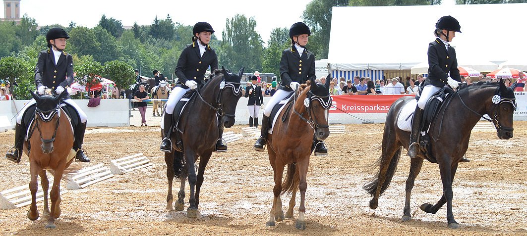 Die Pony-Kids, wie wir sie liebevoll nennen, zeigten ebenfalls eine super Leistung. Hier bildeten Joanne Schauffler auf „Golden Glory“, Fabienne Nicolaus mit „Piaff“, Natalie Maier und ihre „Olina“ sowie Kim Schönland auf „Burning Secret“