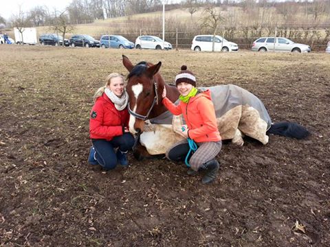 Wie entspannt ein Schulpferd sogar im Winter sein kann, könnt ihr auf dem folgenden Bild sehen. Unsere California Sunshine, liebevoll Calli genannt, relaxt auf der Koppel. Die "Reinholer" sind anscheinend zu spät dran, deshalb hat sie es sich bequem gemacht. "Noch ein paar Streicheleinheiten und noch ein bisschen gutes Zureden....", denkt sie sich, " vielleicht komme ich dann mit euch mit." :-)