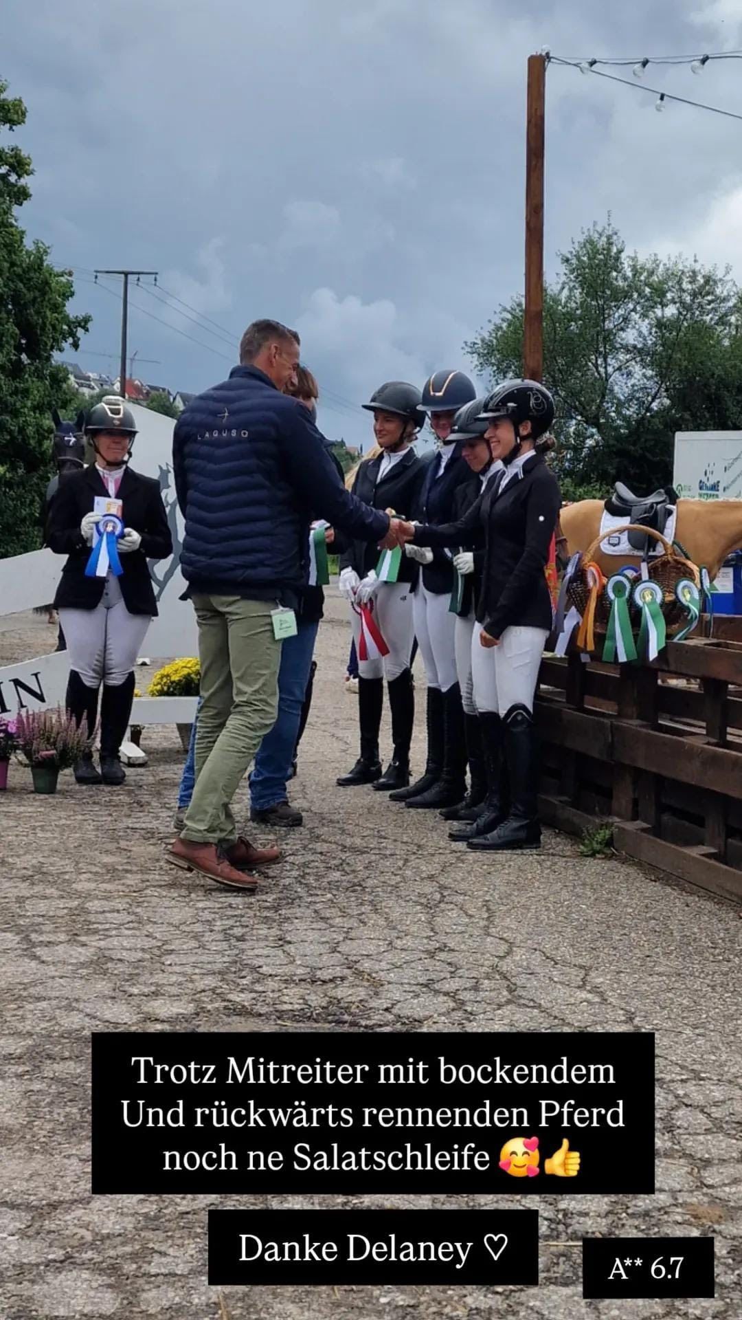 Nachtrag zum letzten WE in Leonberg mit viel Pech und sehr schlechter Orga hat es in der A** noch zu einer Salatschleife gereicht für Delaney und mich. Unser Mitreiter hat mehrfach Probleme mit seinem Pferd inkl. Rückwärtsgang etc warum auch unsere Leistung leider sehr gedämpft war. Delaney war trotzdem supef anständig. Naja weiter geht's.