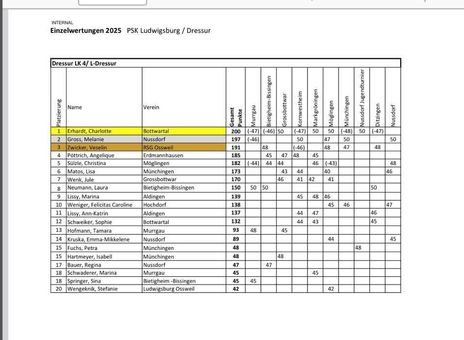 Und all die Mühe hat sich gelohnt: Wir sind PSK-Mannschaftsmeister 2025! 🏆. Das ganze Jahr über sammelten unsere Reiterinnen fleißig Punkte auf zahlreichen Turnieren, und nun stehen die Endwertungen fest:
