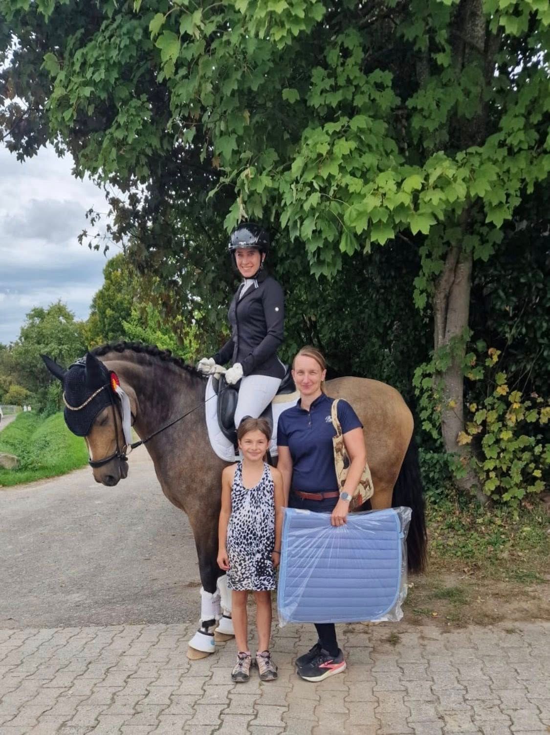 Den Anfang machten Emma mit Notti sowie Jenny mit Delany in der A**-Dressur. Die Freude war groß, als Jenny sich mit einer 7,1 den 6. Platz sichern konnte. Direkt im Anschluss startete sie auch in der L-Dressur und präsentierte Delany dort von seiner besten Seite. Mit einer Wertnote von 7,0 wurde dieser gelungene Ritt mit einem schönen 3. Platz 🥉 belohnt.